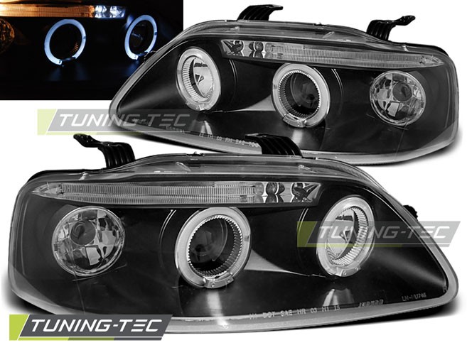 Cena za 2ks – pár. Přední světla, okořeněna o takzvané andělské kroužky, svítící okolo parabol a sloužící jako parkovací světlo. Efekt rozsvícených očí. Vše plně homologováno pro provoz na veřejných komunikacích. Dopřejte svému vozu neobyčejný nový design pouhým přehozením za seriové světla. Manuální nastavení sklonu světel. 2x svítící kroužek v každém světle. Žárovky H1 + H1 v ceně. Parkovací = kroužky. Blinkr 21W.