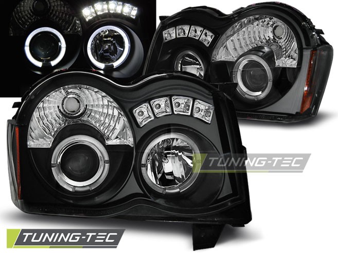 Cena za 2ks – pár. Přední světla, okořeněna o takzvané andělské kroužky, svítící okolo parabol a sloužící jako parkovací světlo. Efekt rozsvícených očí. Určeno pro vývoz do USA, nemají evropskou homologaci.. Dopřejte svému vozu neobyčejný nový design pouhým přehozením za seriové světla. Manuální nastavení sklonu světel. 2x svítící kroužek v každém světle. Žárovky HB4 tlumené. H1 dálkové v ceně. Parkovací = kroužky.