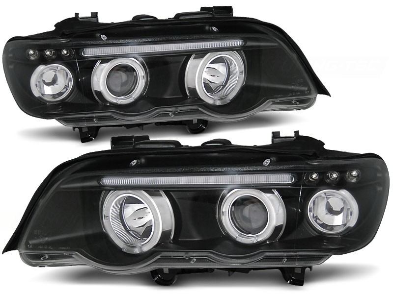 Cena za 2ks – pár. Přední světla, okořeněna o takzvané andělské kroužky, svítící okolo parabol a sloužící jako parkovací světlo. Efekt rozsvícených očí. Vše plně homologováno pro provoz na veřejných komunikacích. Dopřejte svému vozu neobyčejný nový design pouhým přehozením za seriové světla. Podpora elektrického naklápění. 2x svítící kroužek v každém světle. Žárovky H1 + H1 v ceně. Parkovací = kroužky. Blinkr 21W.