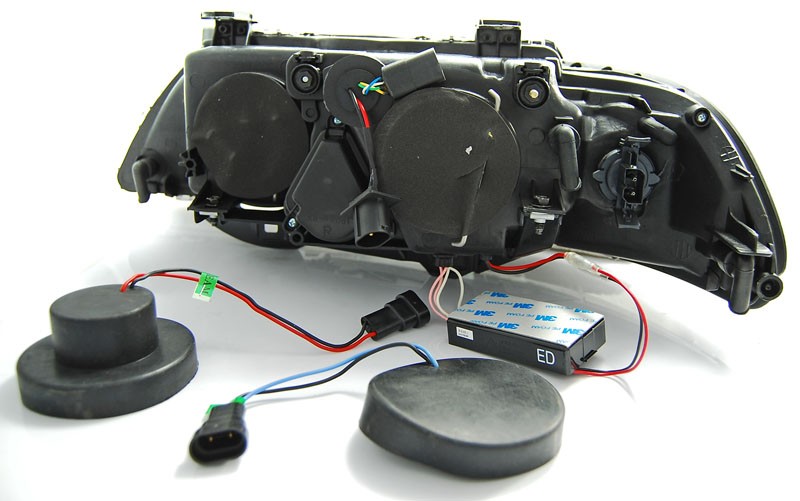 Cena za 2ks – pár. Přední světla, okořeněna o takzvané andělské kroužky, svítící okolo parabol a sloužící jako parkovací světlo. Vyšší bělejší světlo CCFL. Efekt rozsvícených očí. Vše plně homologováno pro provoz na veřejných komunikacích. Dopřejte svému vozu neobyčejný nový design pouhým přehozením za seriové světla. Podpora elektrického naklápění světel i s motorky v ceně. 2x svítící kroužek v každém světle. Pro žárovky H7 + H7. H7 v ceně. Parkovací = LED CCFL kroužky. Blinkr = žárovka.
