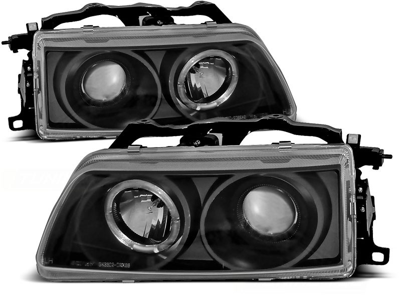 Cena za 2ks – pár. Přední světla, okořeněna o takzvané andělské kroužky, svítící okolo parabol a sloužící jako parkovací světlo. Efekt rozsvícených očí. Nemají E homologaci. Dopřejte svému vozu neobyčejný nový design pouhým přehozením za seriové světla. Manuální nastavení naklápění světel. 2x svítící kroužek v každém světle. Žárovky H1 + H1 v ceně. Parkovací = kroužky.