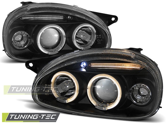 Cena za 2ks – pár. Přední světla, okořeněna o takzvané andělské kroužky, svítící okolo parabol a sloužící jako parkovací světlo. Efekt rozsvícených očí. Vše plně homologováno pro provoz na veřejných komunikacích. Dopřejte svému vozu neobyčejný nový design pouhým přehozením za seriové světla. Manuální naklápění světel. 2x svítící kroužek v každém světle. Žárovky H1 + H1. Parkovací = kroužky + diody. Blinkr - 21W.