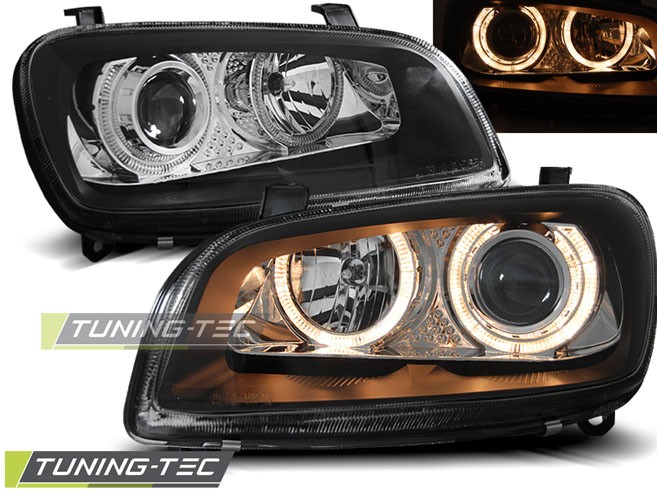 Cena za 2ks – pár. Přední světla, okořeněna o takzvané andělské kroužky, svítící okolo parabol a sloužící jako parkovací světlo. Efekt rozsvícených očí. Dopřejte svému vozu neobyčejný nový design pouhým přehozením za seriové světla.Vše plně homologováno pro provoz na veřejných komunikacích. Podpora elektrického naklápění světel. 2 x svítící kroužek v každém světle + diody.. Žárovky H7 + H1dálková ( H1 v ceně.) Parkovací = kroužky.