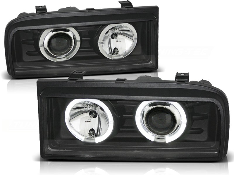 Cena za 2ks – pár. Přední světla, okořeněna o takzvané andělské kroužky, svítící okolo parabol a sloužící jako parkovací světlo. Efekt rozsvícených očí. Dopřejte svému vozu neobyčejný nový design pouhým přehozením za seriové světla.Vše plně homologováno pro provoz na veřejných komunikacích. Manuální naklápění světel. 2x svítící kroužek v každém světle. Žárovky H1 tlumená + H1dálková. Parkovací = kroužky.