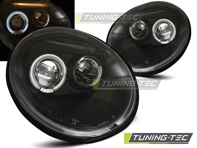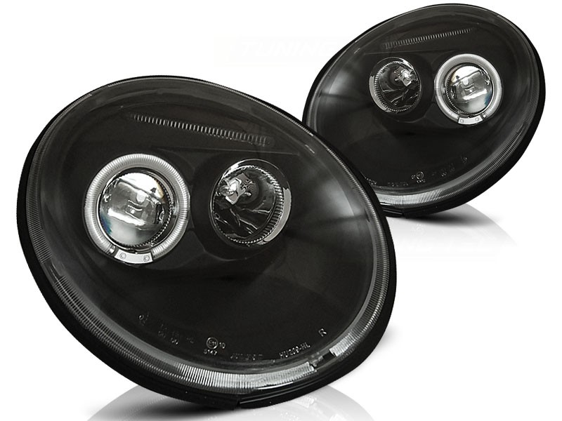 Cena za 2ks – pár. Přední světla, okořeněna o takzvané andělské kroužky, svítící okolo parabol a sloužící jako parkovací světlo. Efekt rozsvícených očí. Dopřejte svému vozu neobyčejný nový design pouhým přehozením za seriové světla. Vše plně homologováno pro provoz na veřejných komunikacích. 1 x svítící kroužek v každém světle. Pro žárovky H1+H1 v ceně. Parkovací = kroužky.