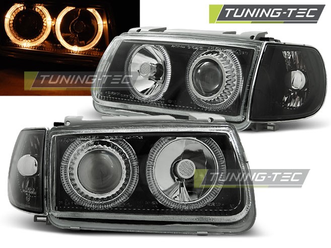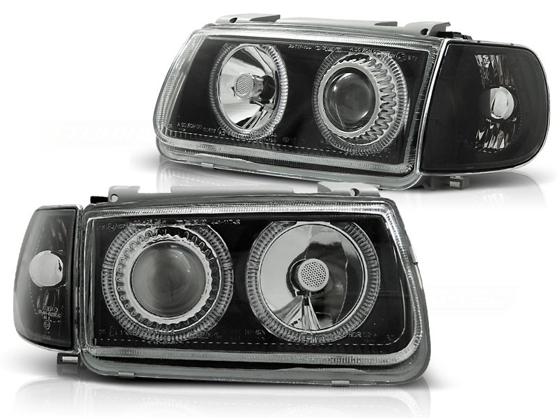 Cena za 2ks – pár. Přední světla, okořeněna o takzvané andělské kroužky, svítící okolo parabol a sloužící jako parkovací světlo. Efekt rozsvícených očí. Dopřejte svému vozu neobyčejný nový design pouhým přehozením za seriové světla. Vše plně homologováno pro provoz na veřejných komunikacích. Podpora elektrického naklápění světel včetně motorků. 2 x svítící kroužek v každém světle. Pro žárovky H7 tlumené + H7 dálkové. Parkovací = kroužky. Blinkr - 21W. Blinkry jsou oddělené a jsou součástí ceny.