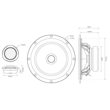 Gumový závěs, ocelový koš, 25 mm kmitací cívka