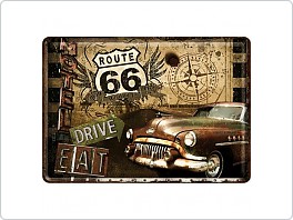 Plechová cedule Route 66, Drive Eat, 10x14cm