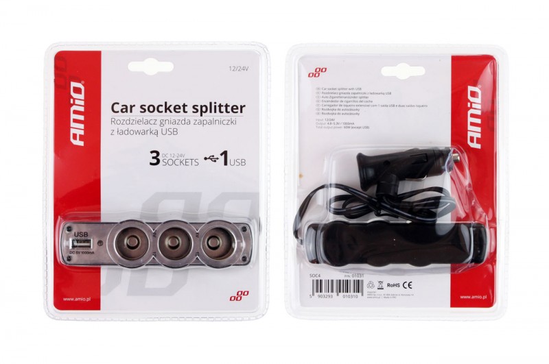 Roztrojka autozapalovače + USB SOC-04