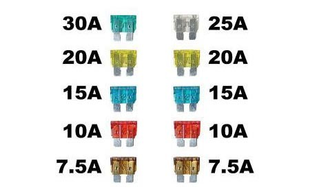 sada 10ks nožových pojistek různé hodnoty, 7,5/7,5/10/10/15/15/15/20/25/30