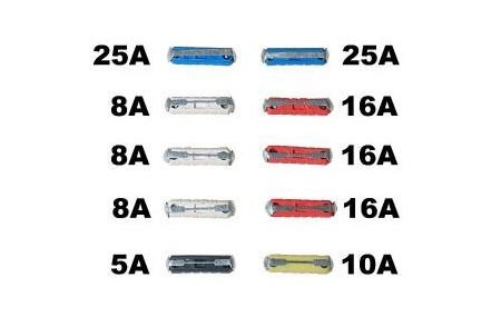 sada 10ks válečkových pojistek různých hodnot od 5A do 25A