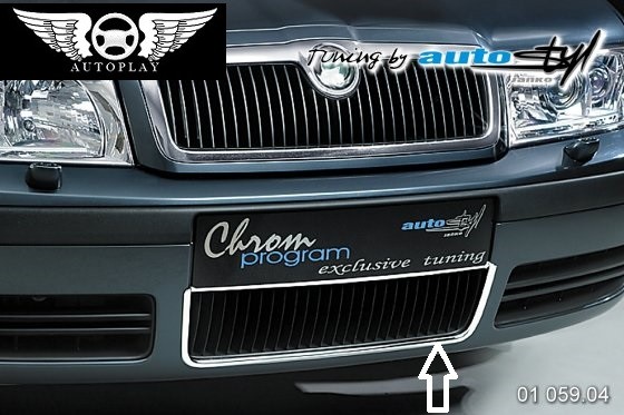 Chromový rámeček nárazníku okolo středového výdechu. Montáž se provádí nalepením na již předinstalovanou pásku. Výrobek má homologaci pro provoz. Galvanicky chromovaný plast. Velice vysoká odolnost, proti Asijským výrobkům. Por model facelift od 2001-.