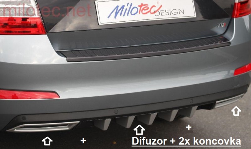 • Difuzor je vylepšen výstupky z materiálu ABS stříbrný matný - stejný materiál jako Atrapy výfuku (součástí balení)