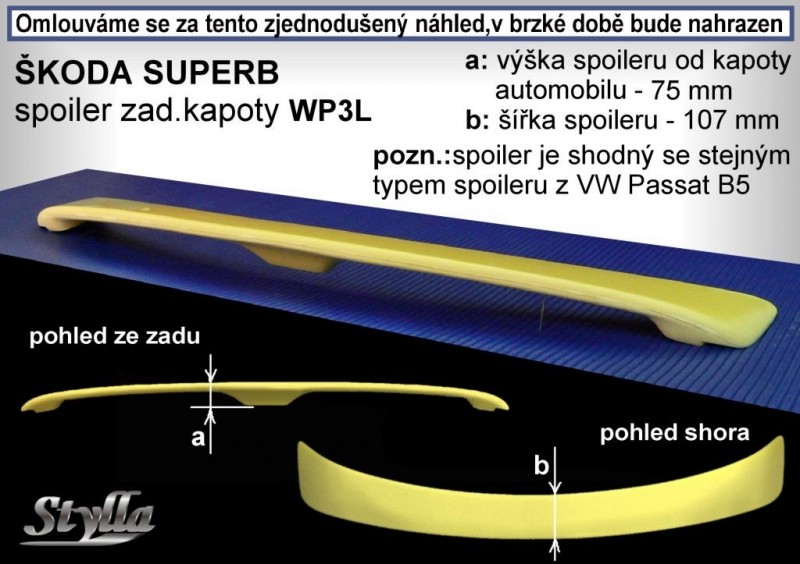 Škoda Superb 1, Křídlo WP3, zadní spoiler, 2002-2008, výprodej