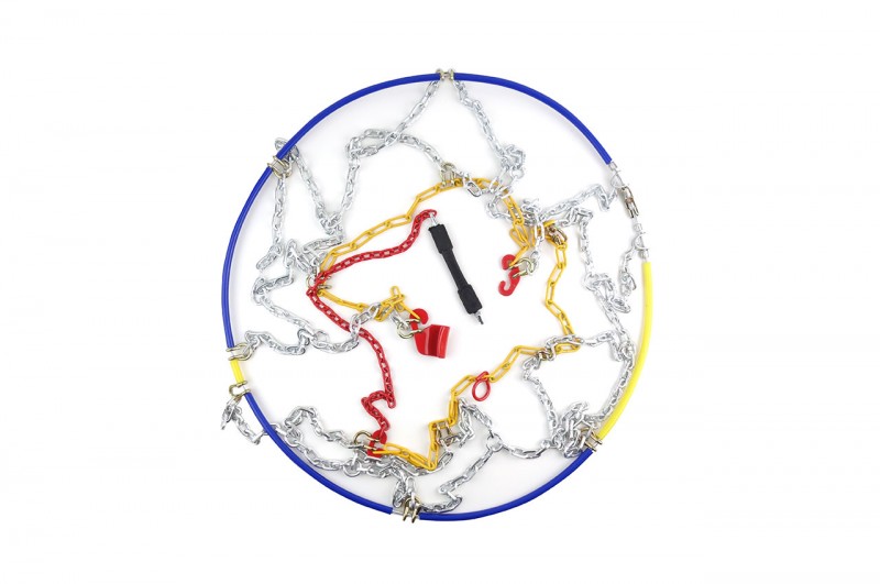 Vyrobeno z tvrzené oceli s asymetrickým kosočtvercovým vzorem řetězu. To zlepšuje přilnavost kola na zasněženém nebo zledovatělém povrchu. Silné články o výšce 12 mm a průřezu ve tvaru čtverce.