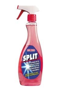 SPLIT je denně používán profesionály v mycích centrech a prodává se v praktickém balení o obsahu 750ml a v akci 1000 ml, vybaveném sprejovým rozprašovačem.