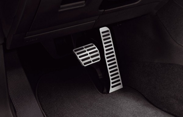 Pedály s kryty z nerezové oceli tvoří důležitou součást sportovního interiéru vozu. Oblast pod nohama řidiče díky nim opticky získá na významu a jejich stříbrná barva se barevně propojí s ostatními chromovanými prvky v interiéru. Kryty zároveň přispívají ke sportovnějšímu pocitu při ovládání vozu a zásluhou jejich pryžových plošek po nich noha nikdy neuklouzne. Tato dvoudílná sada obsahuje kryty na plynový pedál a brzdu a je určena pro vůz s automatickou převodovkou.