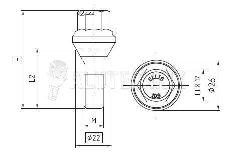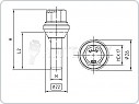 Kolový šroub M12x1,5x28, dosedací plocha plovoucí kužel 60°, celková výška 57mm.