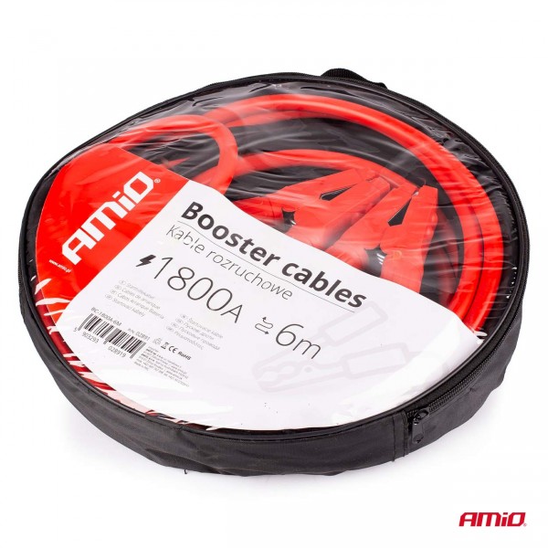 Sada hrubých a pevných startovacích kabelů o délce 2 x 6 metrů - s odporem do 1800A. Hrubý svazek mědi obsažený pod gumovým pláštěm kabelu zajišťuje spolehlivé a maximální vedení proudu.