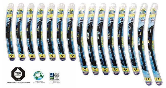 Plochý stěrač nové konstrukce, který zajišťuje důkladné a rovnoměrné stírání. Speciální uchycení, díky kterému lze pomocí přiložených adaptérů použít tento stěrač pro řadu různých zakončení ramen stěračů. Balení á 1 ks ve speciálním "otevíracím" blisteru. Tento typ plochého stěrače je osazen gumičkou s černým grafitem, umožňuje i její výměnu.