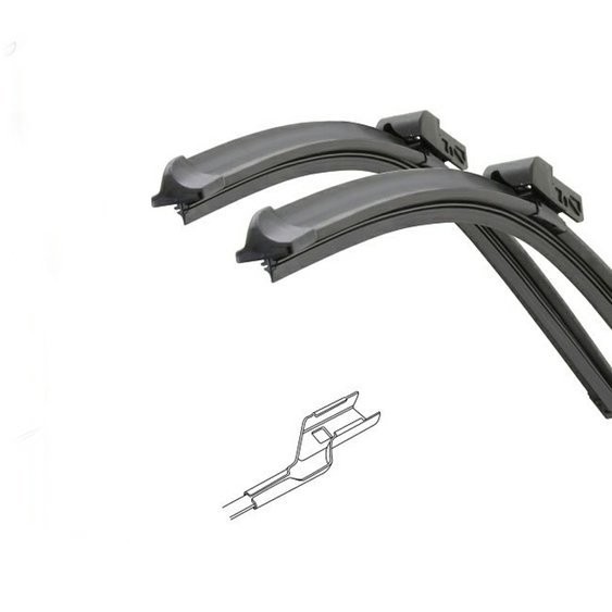 Sada dvou plochých stěračů FLAT L+P se speciálním uchycením pro níže uvedené vozy. Délky stěračů a uchycení je přímo vybrané na dané vozy bez použití různých adaptérů.