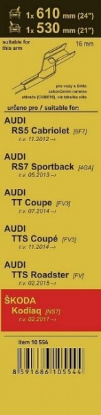 Délky stěračů a systém uchycení na ramínko jsou přizpůsobeny Škoda Kodiaq r.v. 2017->.