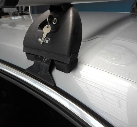 Základní ocelový střešní nosič pro vozy bez přípravy s uchycením pod střešní lem - Montáž nosičů do prostoru mezi dveře a střechu vozu. Nosnost 75kg. Uzamykatelný.