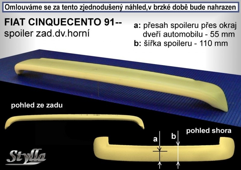 Cena za 1kus. Spoilery značky CT Tuning, patří svou kvalitou k velice dobrým. Výrobky jsou vyrobeny z laminátu a jsou již nastříkány v základním plniči. Jsou krásně vyhlazeny, což zaručuje, žádné dodatečné tmelení, či velké broušení, co také oceníte při přípravě na lakování. Spoilery značky CT Tuning, budou zkrášlovat Váš automobil po celou dobu jeho životnosti. Pokud je to technicky možné, jsou téměř všechny spoilery opatřeny k uchycení vnitřními závity M5 nebo M6 a je tedy možno je jak montovat, tak samozřejmě také lepit. Rozhodnutí je tedy na Vás, zda montáž zvolíte nalepením, montováním, nebo kombinovanou. U větších spoilerů typu WRC, ST a spoilerů s malou dosedací plochou, doporučujeme uchycení kombinované. Výrobky mají po celou dobu životnosti stálý tvar, neprohýbají se. Jsme jedni z výhradních dovozců této značky a proto zaručujeme jednu z nejnižších cen na trhu. Návod k montáži: http://www.stylla.cz/media/navod-k-montazi.pdf