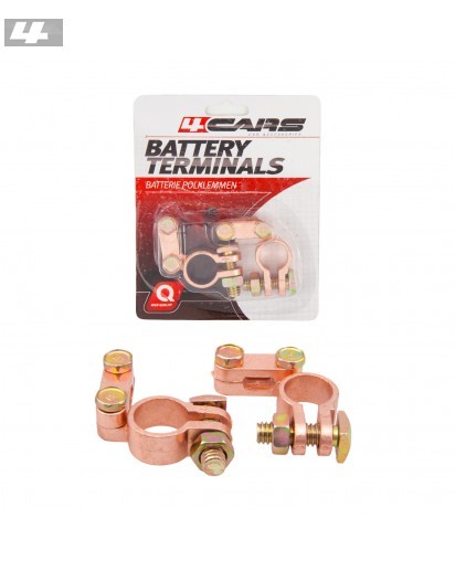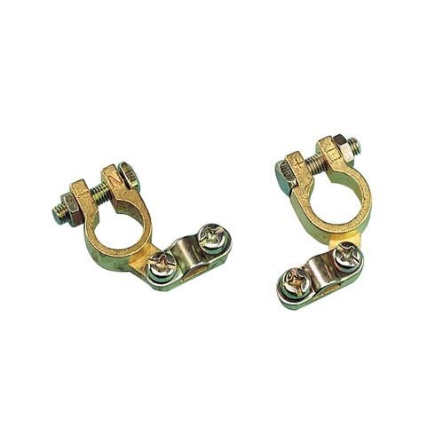 Náhradní svorky akumulátoru. Plus pól, mínus pól. Dutina pro drát o průměru do 13mm, utahnutí drátu pomocí dvou šroubů.