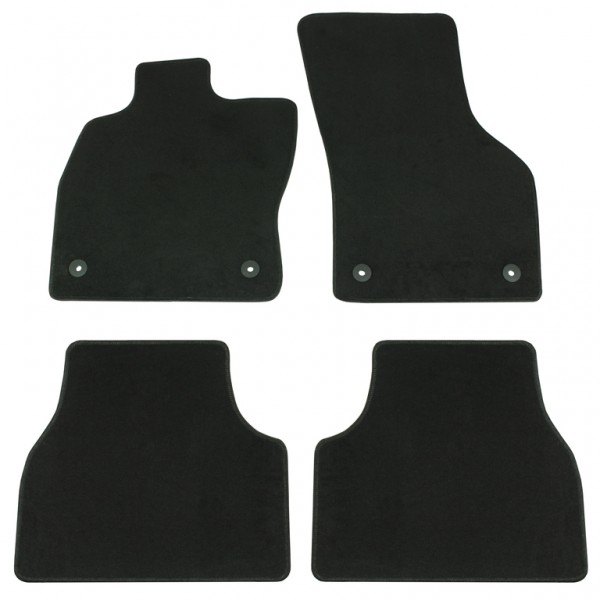 Textilní autokoberce střední jakosti v černé barvě obšité černou lemovkou.