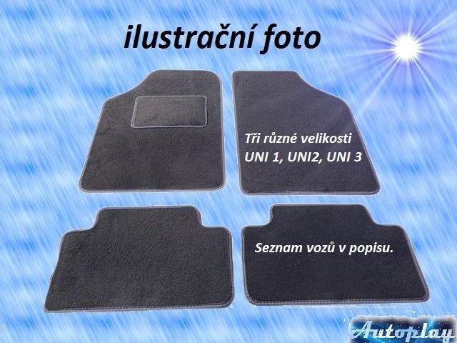 Cena za sadu 4ks. Textilní autokoberce v černém provedení od českého výrobce (ne Čína) obšity tmavou lemovkou. V místě řidiče pod pedály je koberec zdvojen. Spodní vrstva koberců je pogumovaná a protiskluzová.