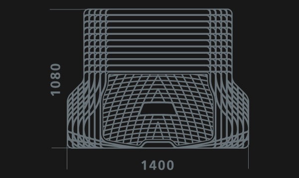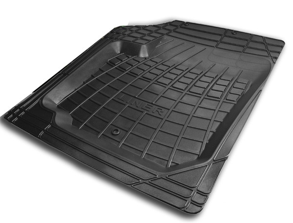 1. 2ks předních gumových koberců Liner, které mají ve střední části prohlubeň pro udržení nečistot v koberci. Koberce mají univerzální rozměr uveden na obrázku a lze je podle vyobrazených rýh stříhat a tvarovat na váš požadovaný tvar podlahy.