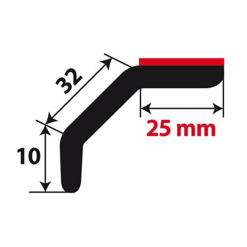 Jedná se o gumovou flexibilní samolepící lištu do tvaru tří hran z nichž je jedna hrana opatřena samolepící páskou 3M.