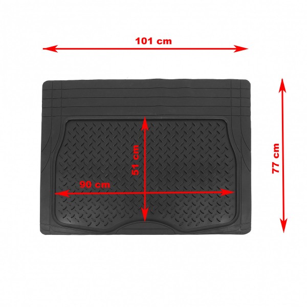 Univerzální gumová vana do kufru vozu s řeznými liniemi pro jednoduché přizpůsobení rozměru kufru.