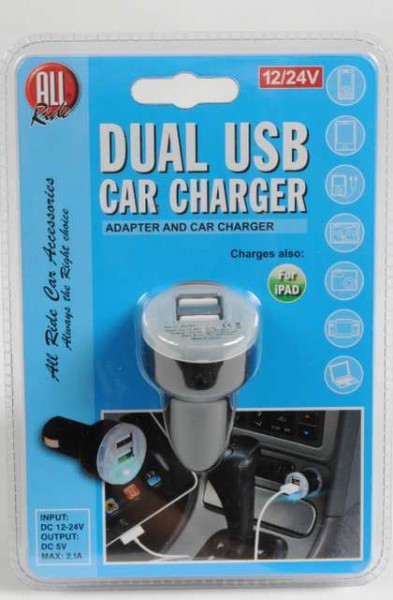 USB adapter do autozásuvky. 2x výstup/vstup pro USB kabel pro nabíjení. Vstup 12-24V. Výstup 5V, max 2,1A. Vhodná i pro iPAD.