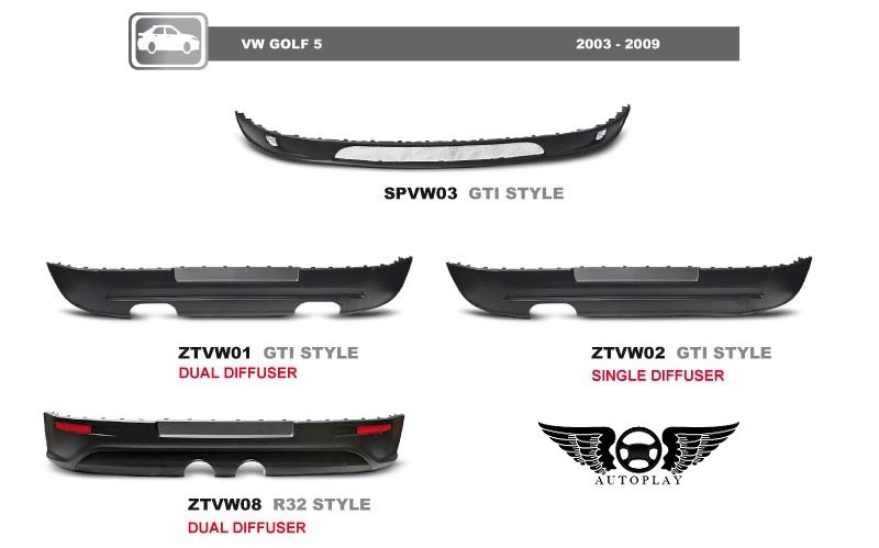 Spoiler pod přední seriový nárazník pro VW Golf 5. Spoiler ve stylu GTI je vyroben s ABS plastu. Super vhled. Dodání včetně mřížek.