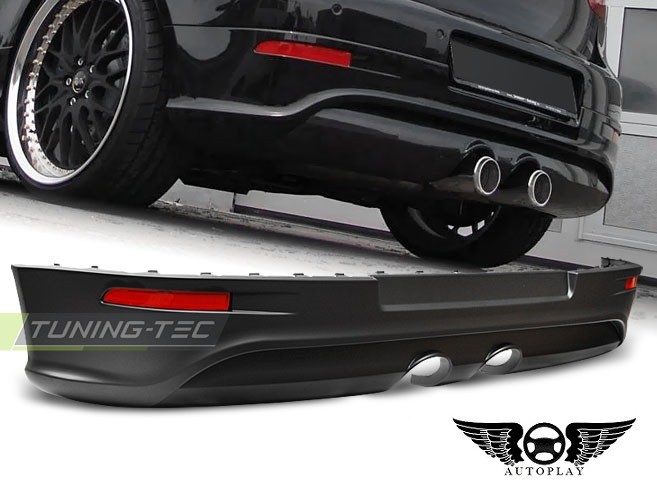 Spoiler pod zadní nárazní pro VW Golf hatchback. Spoiler, difuzor pasuje na seriový nárazník a je vyroben s ABS plastu. Odrazky jsou součástí nárazníku. Difuzor má dva výřezy pro výfuk. Pasuje také na verzi GTI.