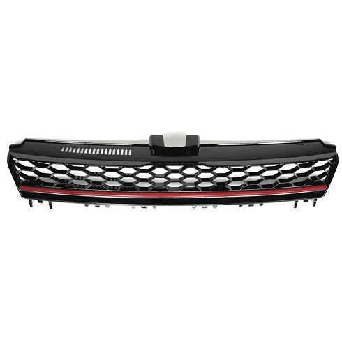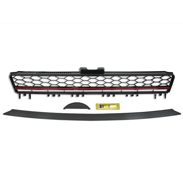 Plastová sportovní maska pro VW Golf 7. Maska má červenou lištu a pasuje, přehozením za seriovou masku. Dovoz Německo.