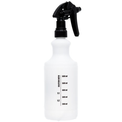 Perfektní míchací láhev pro čistící prostředky pro použití při mytí či leštění automobilu nejen na cestách. Díky své velikosti je ideální mixovací lahví do detailingových tašek snad všech výrobců na trhu. Rozprašovač je vybaven nastavitelnou tryskou, kterou si nastavíte potřebný stupeň atomizace, díky čemuž nanesete rovnoměrné množství použité kapaliny po celé ploše. V okamžiku úplného zašroubování špičky dojde k zablokování postřiku. Míchací láhev je vyrobena z plastu, který je odolný kyselým i alkalickým tekutinám. Bok nádrže je opatřen ryskami značícími dostupný objem, navíc i jednoduchými pomůckami napovídajícími případný poměr míchání.