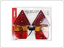Sada zadních homologovaných světel k osvětlení přívěsů apd. Díky magnetickému uchycení lze lampy velice rychle instalovat i demontovat na železné části přívěsu. Lze montovat i na náklad překrývající seriové světla přívěsu, či vozidla.