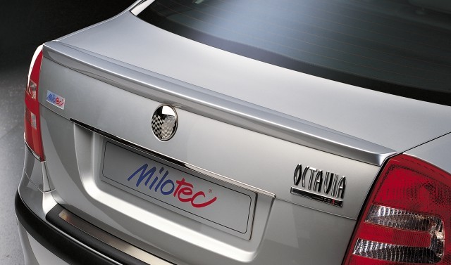 Zadní spoiler je vyroben z ABS materiálu s povrchem černé metalízy, který je UV stabilní a není třeba lakovat. Lze však i přelakovat do barvy vozu.