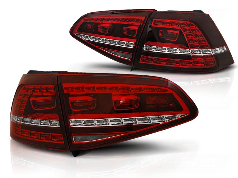 Zadní čirá světla VW Golf VII 13- HTB - červené/bílé LED. Nahrazení původního systému koncových světel (pouze bez LED funkce). Homologace E - vyraženo na krytu světla, snadná montáž výměnným způsobem, super cena, vysoce sportovní vzhled, cena za pár. Naše firma je přímým dovozcem!
