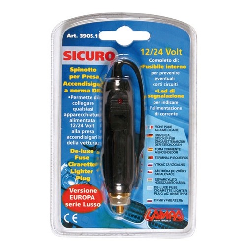 Autozástrčka 12V-24V s LED indikací a napájeným kusem kabelu od Italské firmy Lampa.